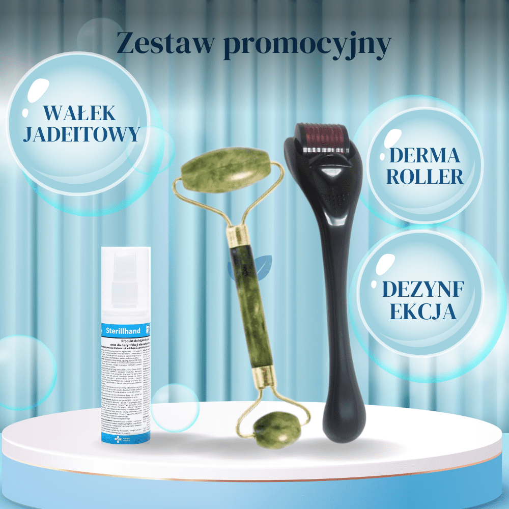 Dermaroller + Płyn do Dezynfekcji + Masażer do twarzy z Jadeitu ZESTAW