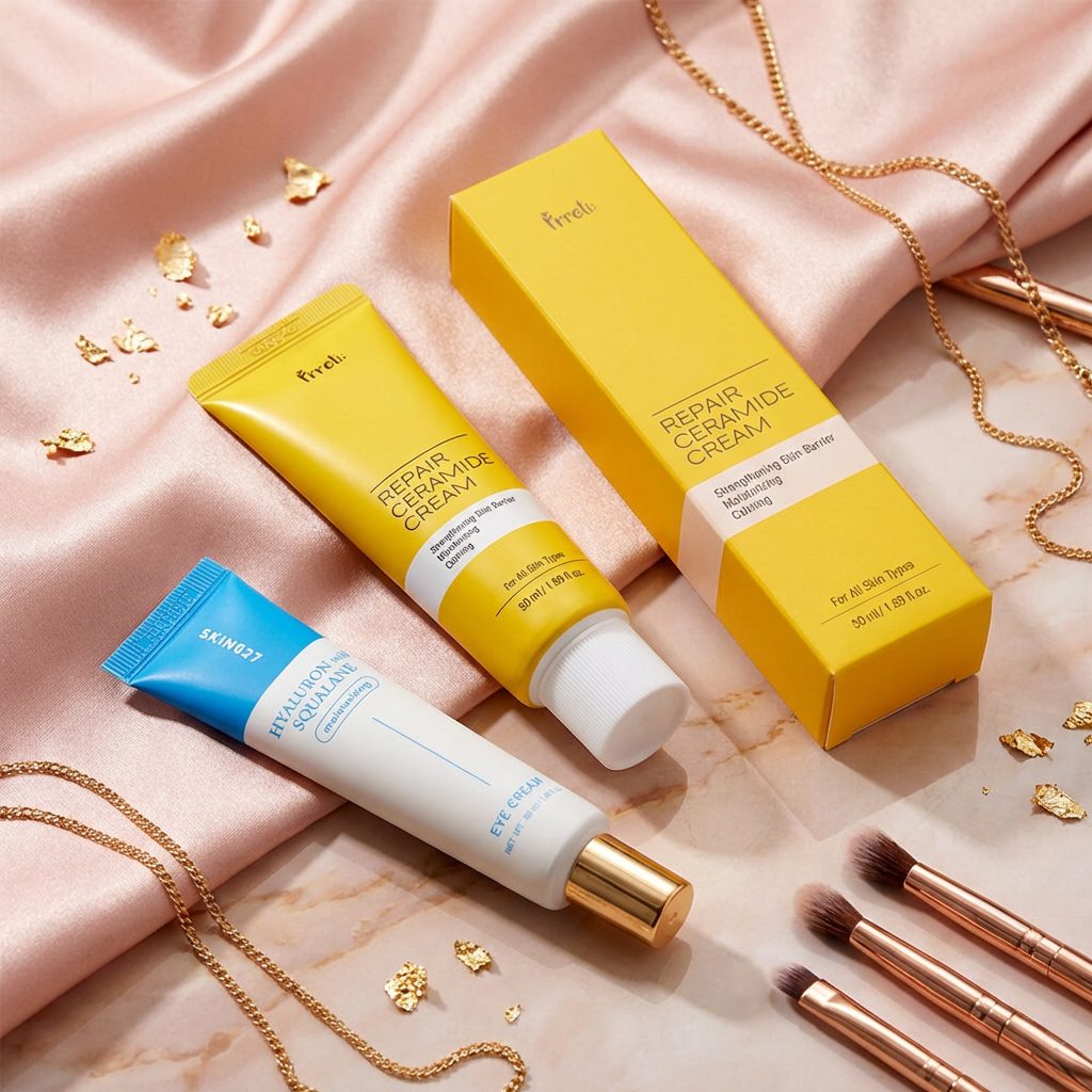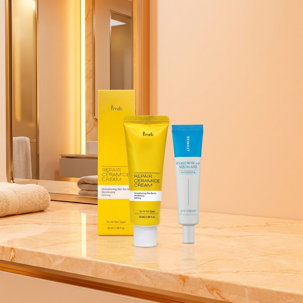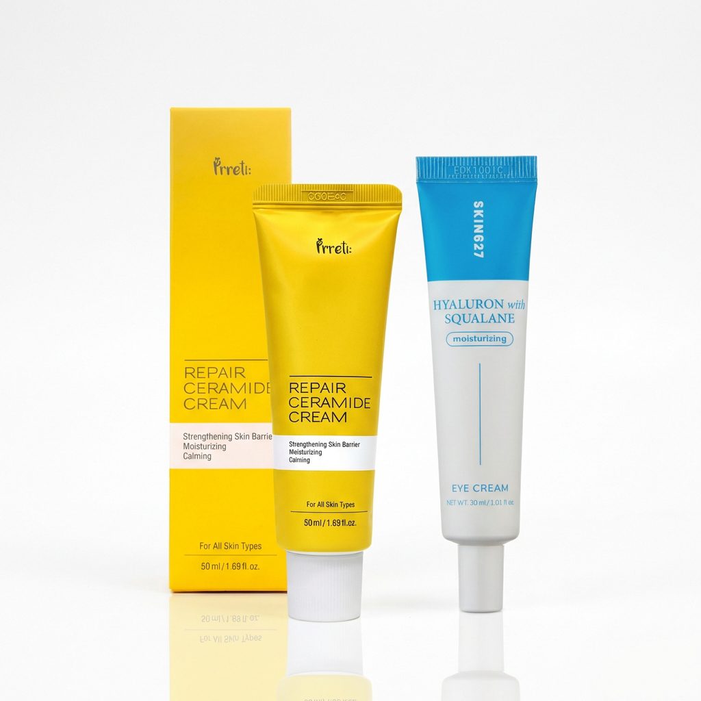 PRRETI Krem z ceramidami, Kolagenowe serum pod oczy Zestaw.